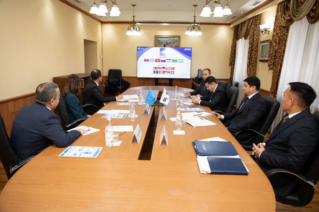 CARICC Director Mr. Makhmud Khamidov met with Ms. Georgette Gagnon, Deputy Special Representative of the Secretary-General and Officer-in-Charge of the United Nations Assistance Mission in Afghanistan (UNAMA), and Mr. Yusuf Kurbonov, UNODC International Programme Coordinator, in Almaty on 27 November 2025.
