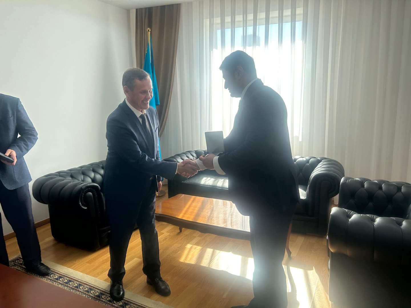 Первый заместитель Министра иностранных дел Республики Казахстан г-н А. Рахметуллин поздравил г-на Хамидова с назначением на должность директора ЦАРИКЦ и пожелал успехов в дальнейшей профессиональной деятельности.